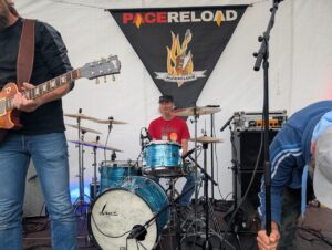 Während Aufbau und Soundcheck füllte sich der Platz allmählich mit den geladenen Gästen verschiedenster Altersklassen. Zudem war ein professionelles Freistiltheater angereist, welches auf sehr unterhaltsame und kurzweilige Weise das Bühnenprogramm eröffnete. Nach gemeinsamem Speisen war es dann an der Zeit, unsere schweißtreibende, aus Südwestfalen importierte Southern-Bluesrock-Show zu beginnen. Obwohl das Publikum nicht unbedingt aus ausgemachten Bluesrockfans bestand, hatten wir ab dem ersten Ton alle Anwesenden auf unserer Seite. Die Versorgung mit Getränken und kulinarischen Köstlichkeiten klappte für alle hervorragend und wir waren im Handumdrehen fester Bestandteil der Feierlichkeiten. Steffen, der für seine ausgesprochene Leidenschaft für exklusive Fahrzeuge bekannt ist, bot parallel zur Show Rundfahrten mit seinem Polaris Slingshot an, in deren Genuß auch Pace Drummer André zuvor gekommen war. Zudem untermalte er unseren Gig zu später Stunde mit einem fulminanten Feuerwerk. Kurzum, die Party war wirklich rund.